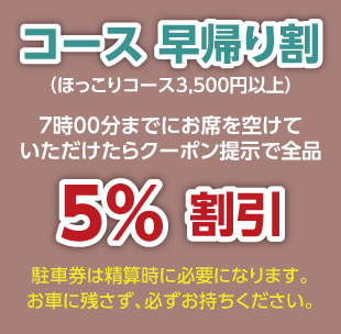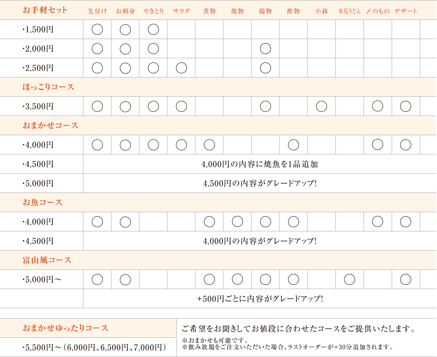 ()内はコース料理なし及びお手軽セット時の通常料金になります。