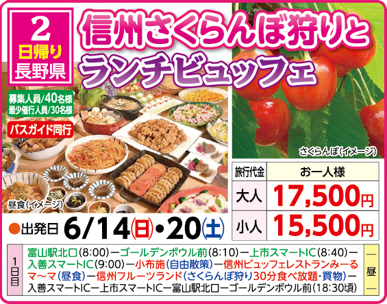 ツアー 信州さくらんぼ狩りとランチビュッフェ