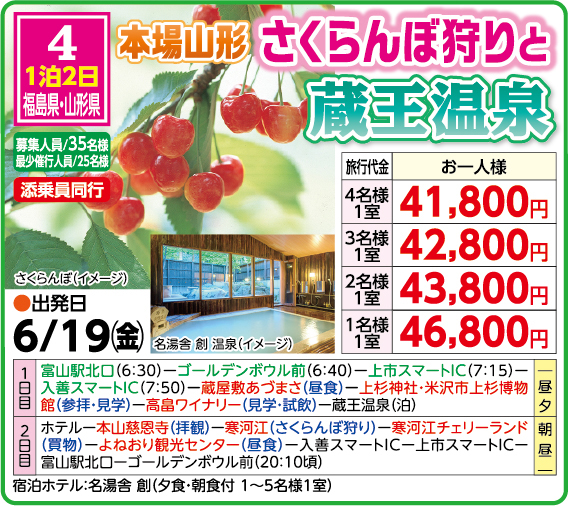 ツアー本場山形さくらんぼ狩りと蔵王温泉